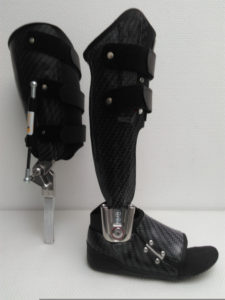Neben den herkömmlichen Orthesen werden in unserer Kohlefaserwerkstatt Apparate in Gießharz- oder Prepregtechnik hergestellt. Bei diesem Verfahren werden in Epoxidharzgetränkte Kohlefasermatten auf ein Gipspositiv der Gliedmaße aufgeklebt. Dieses Verfahren zeichnet besonders das sehr geringe Gewicht der Orthese aus. Carbon ist von der Stabilität her mit den in der Orthopädie verwendeten Edelstählen zu vergleichen, dabei jedoch besonders leicht.